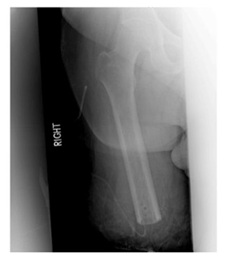 Transfemoral amputations have seen an improvement in surgical ideology over time. Traditionally, according to the general and vascular surgery literature, muscle transection when performing this procedure can be done without any stabilization. Contrary to that, orthopedic principles indicate that when performing a transfemoral amputation a myodesis is to be performed to limit the likelihood of developing a flexion or abduction contracture (Figure 1). With either contracture the amputee would be unable to generate sufficient power to manipulate prosthesis [9]. When performing the adductor myodesis, the hip must not be flexed as this would create an iatrogenic flexion contracture that would only complicate post-operative rehabilitation. Maximizing length in the extremity assists patients with transfers and sitting. A long posterior skin flap with adequate muscle coverage over the beveled femoral diaphysis and adductor myodesis allows for a cosmetic residual limb that is amenable to prosthesis fitting and eventual ambulation.