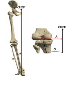 External Knee Adduction Moment (EKAM) (Figure 1) can be defined as the perpendicular distance between the Ground Reaction Force (GRF) and the centre of the knee joint, it is regarded as the relative load on the knee MC compared to the LC, which acts as a force pulling the knee in to the varus position [13,14].