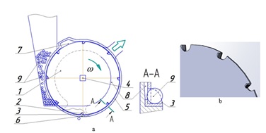a – drawing; b – three-dimensional model of the section of the sowing disc.
