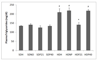 *Significant difference (p <0.001) of HDP40 when compared to other hypercaloric groups. # Significant difference (p <0.001) when compared with groups that received the standard diet and the HDP40 group.