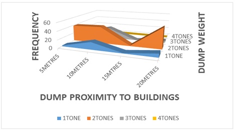 Figure 12: Dump proximity to buildings and dump-size.