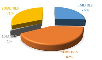 Dump-weight and dump proximity to buildings showed a significance X2 = 26.497 df=9, P < 0.05 (figure12). Dumpsites generate health problems to the human population. Health problems created by waste dumps could be prevented by a proper waste management strategy. Waste-dumps are rich in wildlife species like rodents, snakes, birds, and cats, including domestic animals like cattle, dogs, goats, pigs etc. Additionally, dumpsites are equally rich in insects like flies and mosquitoes, vectors of human diseases like malaria, diarrhea, and typhoid. The human disease infection, as well as environmental pollution role played by dumpsites outsmarts the ecological benefits of bird-foraging. The dominant dump proximity to houses was 10 meters 42% compared to 20 meters 31%, 5meters 26%, and 15 meters 1% respectively (figure 13).