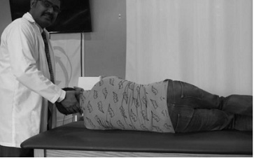 The patient received 4 treatment sessions spread over 2 weeks at 2 times a week. On the first session following testing, the Barbecue maneuver was performed (figure 14 a-c) [14]. This procedure involved laying the patient supine and then having him turned around his longitudinal axis toward the affected side as in testing and waiting for the dizziness to stop. Then the patient was turned to the unaffected right side and maintained for 30 seconds. This was followed by the prone position and finally to the affected side and back to supine. Thus, a total of 360 degrees of rotation was accomplished. After every 90 degrees of rotation the patient was maintained in the new position for 30 seconds. Upon completion of the maneuver, re-testing was done with the Roll test. No apparent dizziness or nystagmus was evident.