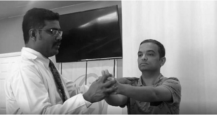 On the fourth visit in the second week, he continued to present with full range of motion in the cervical region and a completely negative finding on the roll test. He continued to have some sensation of disequilibrium, and a was fully compliant and independent with his home exercise program which included, head and cervical axial extension, flexion rotation, side bending and head rotation to the left and right with the head facing forward. This was concluded with strengthening exercises to the longus colli, multifidus and trapezius using a resistance band. During the las visit his DHI score was 8. He was discharged and advised to continue his home program with a larger emphasis on the gaze stabilization and cervical mobility. A three month follow up showed a substantial reduction in disequilibrium with negligible reminders on and off especially after extended computer work. He had resumed most of his activities with no major complaints of disequilibrium or dizziness.
