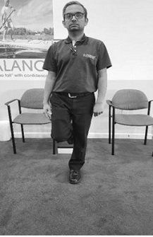 The patient was made to stand unassisted on one leg, timed from the time the other foot left the ground till when the foot touched the ground again (figure 4). If unable to stand for 5 seconds or more it is considered the patient is at a greater risk of a fall. The patient was able to sustain this position for more than 5 seconds.