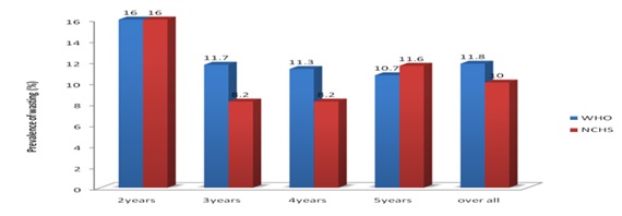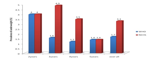 I.There is need to switch to the more robustly constructed and up-to-date WHO standard for assessing nutritional status of pre-school children. Otherwise, a significant proportion of wasted and stunted children who are at risk of excessive morbidity and mortality would be missed.