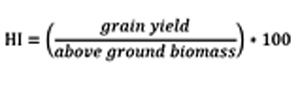 Harvest Index (%) was determined as a ratio of grain yield to above ground biological yield on dry weight basis in percentage [13] as described in the following formula.