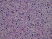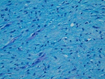 The pathological features were a multinodular proliferative lesion, composed of bland, uniform spindle-ovoid cells with no mitotic activity, in richly vascularized interstizial mixoid matrix with focal chronic inflammatory chances. The proliferative index (MIB1/Ki67) was 1%. Immunohistochemistry: neoplastic cells express smooth muscle actin. S100, H caldesmon, CD117, DOG1, CD34, SOX10, CKAE1-AE3 GFAP, MUC4, MDM2 were negative (Figures 2,3,4). Strikingly the histo-cytopathological analysis led to diagnosis of plexiform fibromyxoma.