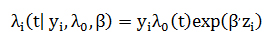 If the covariates are known, they can be applied in analysis; however, it is almost impossible for it to include all important risk factors, perhaps because we have very little information at individual levels. Besides, maybe it is because we haven’t risk factors relationship. Under such conditions, it is useful to take two variability sources in the data length into account: the observable risk Factors variability was theoretically predictable and the heterogeneity due to the unknown & unpredictable risk covariates not being predicted theoretically. The unobservable risk factors expressed by a synthetic variable called frailty which is a random one tracks down several distributions [11]. If we take Z as the known variables vector and the unknown variables influencing hazard function in both, then the real model of Cox Proportional at time t will be in the form of λ0(t)exp(β'zi+Ψ'w). Since W is unknown or immeasurable, we assume Expo (Ψ'w) random and take it as random effect or frailty effect Y and put in the model as the following. This model shows that risk at time t is as it follows:The above model is known as the modified Cox model or the Survival Frailty model [12].