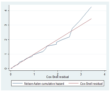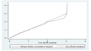 Diagram 2: Cox - Snell Residuals in Weibull model along with gamma frailty model.