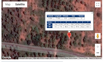 A magnetic survey is a procedure that uses a magnetometer to measure the geomagnetic field over a certain area. Surveys document the spatial variation in the strength of the Earth's magnetic field. They may measure the total magnetic field strength using two geographically separated sensors, or they may measure the gradient of the magnetic field using two spatially separated sensors. In order to create a grid of data points, the magnetic measurements are made using magnetometers along profiles or a set of parallel profiles. This technique is often employed in magnetic surveys. A proton precession magnetometer was used to collect magnetic data from 100 sites in the study region (Table 1). The magnetometers used have the same sensitivity. For measuring diurnal variation, one is fixed at the base station, and the other is fixed in the research region for the survey. A certain time interval can be chosen for the base station magnetometer to record. Crosschecking the readings from the two magnetometers in the same location and at the same time for identical values is essential before moving further with the research. An east-west alignment is used for the sensor head. Every 10 minutes, base station readings are recorded. The stations should be placed far from any large metallic objects (such as reinforced concrete walls, electrical lines, cars, and metropolitan areas), as these objects might occasionally prevent data from being available within the survey grid in ground magnetic surveys. The range of the sources and the area to be examined are key factors in station separation. At any given time, three readings should be recorded there. Measurements must be taken until the difference between these three readings is within two gammas. The time of recording is also indicated because it will be necessary to account for diurnal variations. The main drawback of a ground magnetic survey is how challenging and time-consuming it is. High data resolution is a benefit, and field correction of survey data errors is also possible. Without processing, the magnetic data cannot be utilised. In general, it has been discovered that the processed findings acquired are well correlated with geological features. The International Geomagnetic Reference Field (IGRF) anomaly map was produced after the data underwent the necessary modifications, such as diurnal variations.