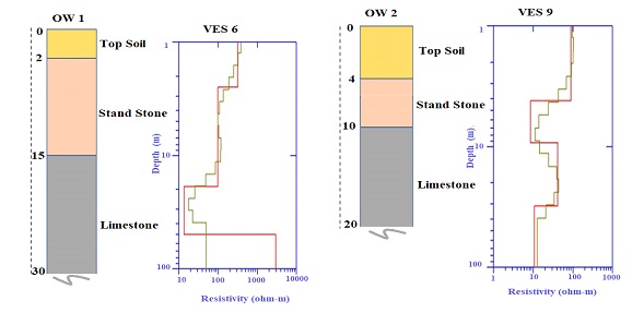 Figure 14: Correlation of subsurface geology with resistivity depth profile at VES 6 & VES 9.