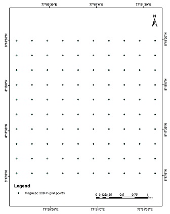 Figure 2: Grid point survey for Magnetic survey along the study area.