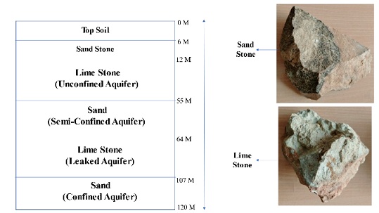 The Figure 4 shows the subsurface lithological information and sample at nearby VES 6. Hard rock formations are available on the north and north-eastern sides of the open well, as confirmed by lithology. Similarly, limestone formation is available on the south and south-western sides, and through the open well and bore well information, it is confirmed.
