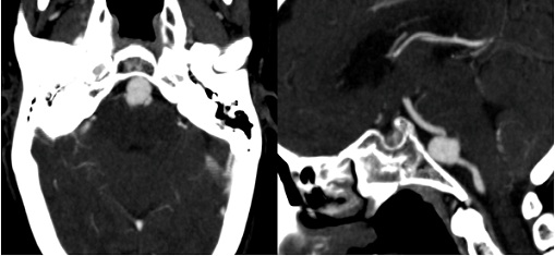 The first case of this rare entity was described in 1979 by Hoffman, et al. [3]. Embryologically, the basilar trunk is formed by the union of the two vertebral arteries around the 7th week of amenorrhea. Any fusion anomaly may result in a focal duplication of the basilar artery [4].