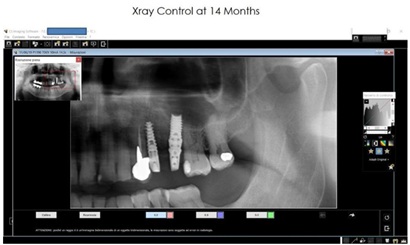 At this point the implants were loaded and finalized with a fixed prosthesis one-to-one and subsequent control at 14 months (Figure 19).