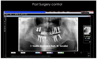 All Patients have a personal medical record which reports the various phases from the beginning to the end of treatment with all the indexes and fiscal-code, all Patients have a detailed and timely iconographic kit. Rx and TC checks at six months, eight months (two months after loading) up to 18 months.