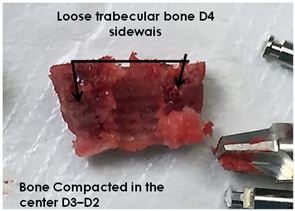 Figure 4: The prototype was been removed and we note: laterally loose bone and compacted bone in the middle.