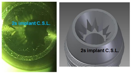 The second feature is the connection with the prosthetic abutment, which is initially conical in shape and has a 12-pointed star-shaped knurling (godronatura) in depth (Figure 7).