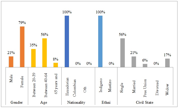 It is observed that the majority of caregivers are women between the ages of 40-60, who are responsible for the maintenance of the home and the care of their children. In their entirety they are Ecuadorians of indigenous ethnicity and married marital status.