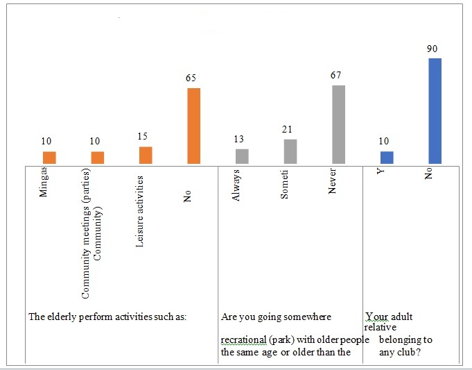 From this base in this research the data refer that older adults are isolated from society, caregivers do not look at them as priority social entities, from their connotation they do not consider as vital that they relate to their environment, so their life is full of limitations remaining only in their daily survival without an optimal quality of life. That is so analyzing the experience of older adults over the years we see that this population group presents changes at the physical and mental level. So it requires special care from a transdisciplinary vision that includes not only the maintenance or life but also value the importance of its permanence and its own experience, focused on the social relationship making it feel like an active being in family and social environments. The findings of this research determine that the invested group does not have the support and readiness of their relatives when inserting them in entertainment environments, therefore, they do not agree to be part of spaces of integration and social relationship, a relatively small percentage is seen than if it does. An important determinant turns out to be the geographical situation, constituting the very difficult transfer, added to the time of availability of the caregivers, also the low economy that directly influences and that participation requires an economic contribution. Given this background, it is strategic to consider that caregivers should be aware of the activities carried out by the team of Primary Health Care facilitators, who work in this sector, and should also be an active part of the programs implemented in order to achieve the improvement of the quality of life of the elderly with the support of the corresponding instances. From this perspective and continuing with the analysis of the problem and found that not only remains on paper what the Political Constitution of Ecuador of 2008, which promulgates the law referring to the Ministry of Public Health as the National Governing Body of Health, which stipulates that public and private establishments must refer to the Health Care Model, with a focus on care programs for the elderly, as a fundamental aspect of joint work of the state and community in view of this population with emphasis on rural areas, developing health strategies that contribute to an integral well-being [16].