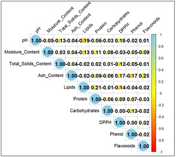 The data recorded was analyzed by using R-software for correlation heatmap construction (library used: ggplot2, agricolae, dplyr, corrplot, ggcorrplot) and MS-Excel All determinations were carried out in triplicate and after calculating the amount of each group of components in three seasons of samples of royal jelly, the amounts were reported as mean ± standard error (SE). P values <0.05 were considered statistically significant.