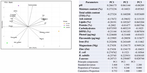 Table 1: Seasonal differences in the physicochemical properties of royal jelly from Apis mellifera.