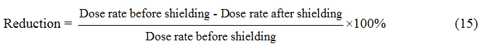 Maximum reduction of radiation: For each type of sample, the maximum radiation reduction percentage was computed using the equation (15) below: