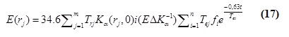 Where (E(r(j)))is the effective dose from patient after taking radioiodine at distane rj m, Tej is the occupancy factor from patient at the distance rj m, Kα (rj, 0)i is the air kerma rate from the patient at the distance rj m in the i-th term, EΔK(-1) is the conversion factor from the air kerma to effective dose Tej effective half- life of the i-th exponential term in a multiple exponential function, Fi is the absorption fraction of the metabolic compartment, t is the length of time, and n, m is the radioactivity with time dependent.