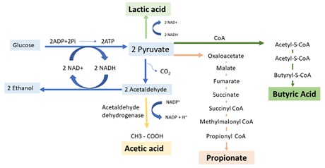 This article presents a comprehensive review of advancements in diverse fermentation processes, encompassing alcoholic, lactic acid, acetic acid, propionic acid, and butyric acid fermentation. Figure 1 encapsulates the journey from glucose to pyruvate and further conversion to acetic acid, lactic acid, propionate, and butyric acid. Additionally, the article explores upcoming developments in the fermentation domain.
