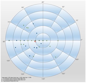 Figure 1: Double angle polar plot of astigmatism data using the value of the cylinder for the magnitude and the axis of the astigmatism for the angle.