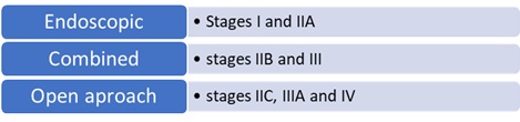 Figure 1: Relation between clinical stage and surgical methods performed.
