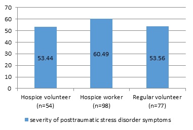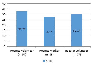 Table 5: Descriptive statistics for guilt levels among hospice volunteers (n = 54), hospice workers (n = 98) and regular volunteers (n = 77).