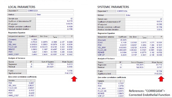 Multiple regression analysis showed that a regional parameter like endothelial function can be related with regional and systemic parameters, but a local parameter like mean WSS, considered linked to endothelial function, was not (Figures 9 &10).