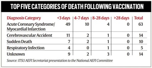 Great part of deaths after covid -19 vaccination happened in less then 3 days . ( figure 18) Of interest also to observe the pathological mechanism of action of S.A.R.S. cov-2 spike protein trought the link with ACE2 receptor in pulmonary and other tissue. The same to observe the RARE ADR of some m RNA covid-19 vaccine like pericarditys and miocarditys in young males. ( see literaure published).