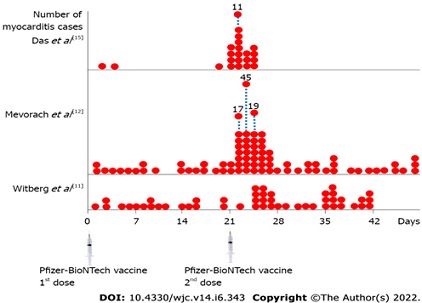 Figure 4: COVID-19 disease 2019 mR.N.A. vaccine associated with MYOCARDITIS MC. From World J Cardiol. 2022 Jun 26; 2022 Jun 26. doi: 10.4330/wjc.v14.i6.343.