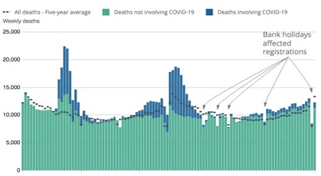 In total over the past 6 months 84,337 people have died at home, 21,803 (34.9%) more than the 5-year average from 2015-19. That's a much bigger difference than the change in other settings” (Figure 12).