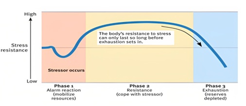 If stressor continues beyond body’s capacity, organism exhausts resources and becomes susceptible to disease and death. [7].