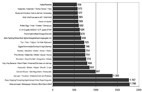 Figure 1: Adapted from the taxonomy of indigenous games constructed by South African children 2001/2002.